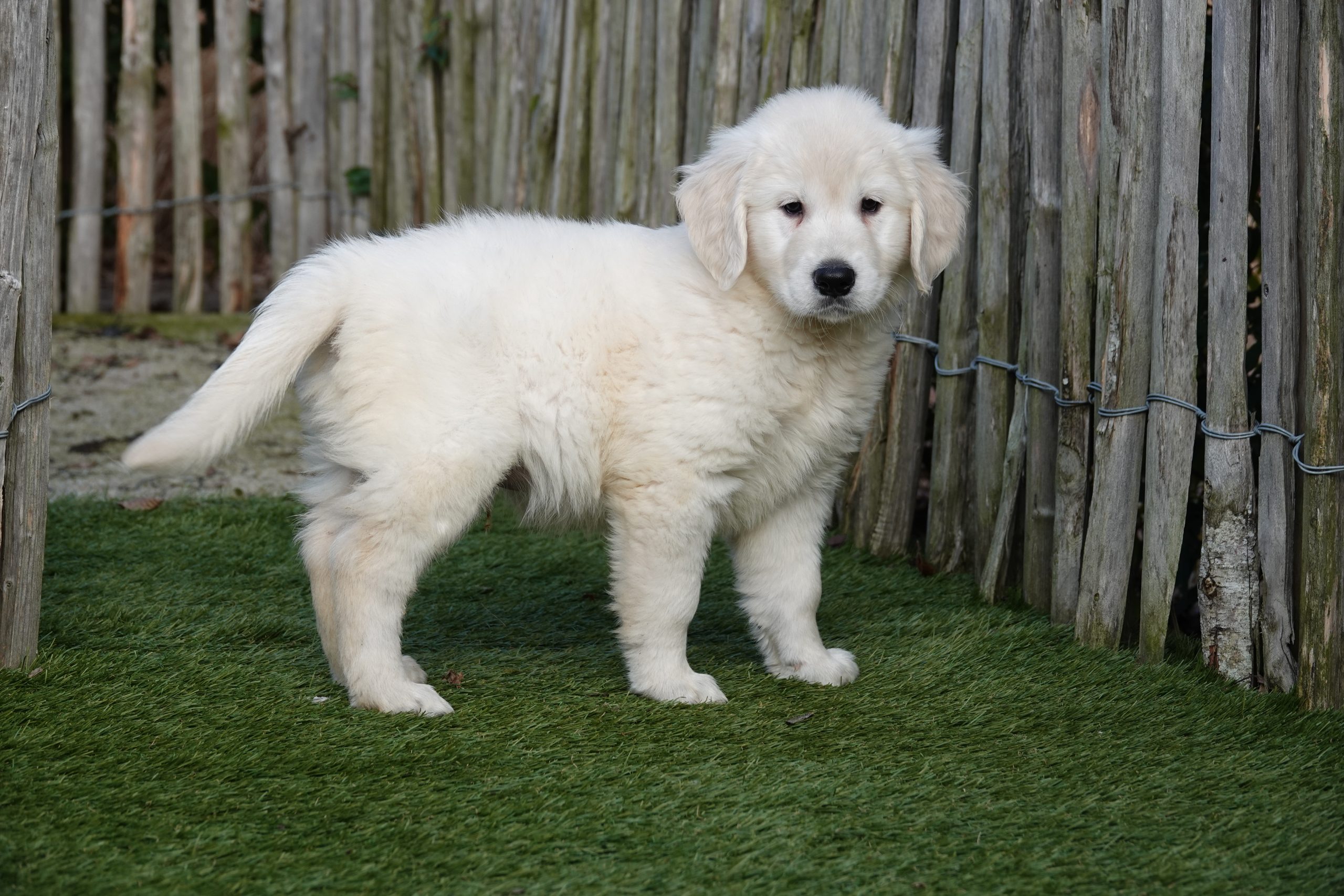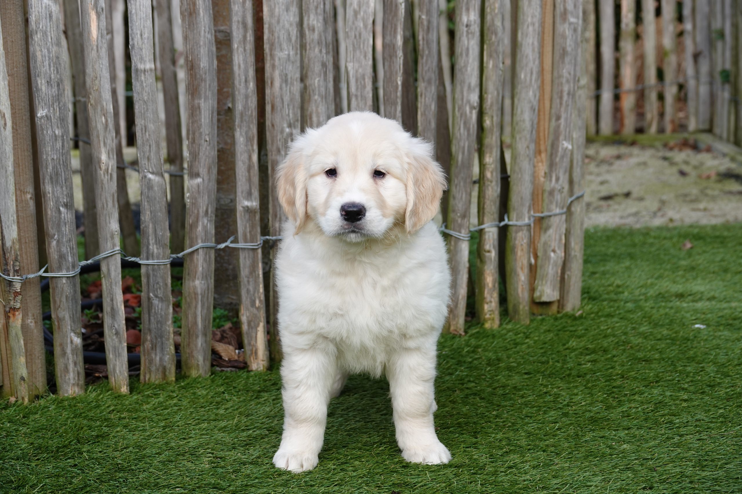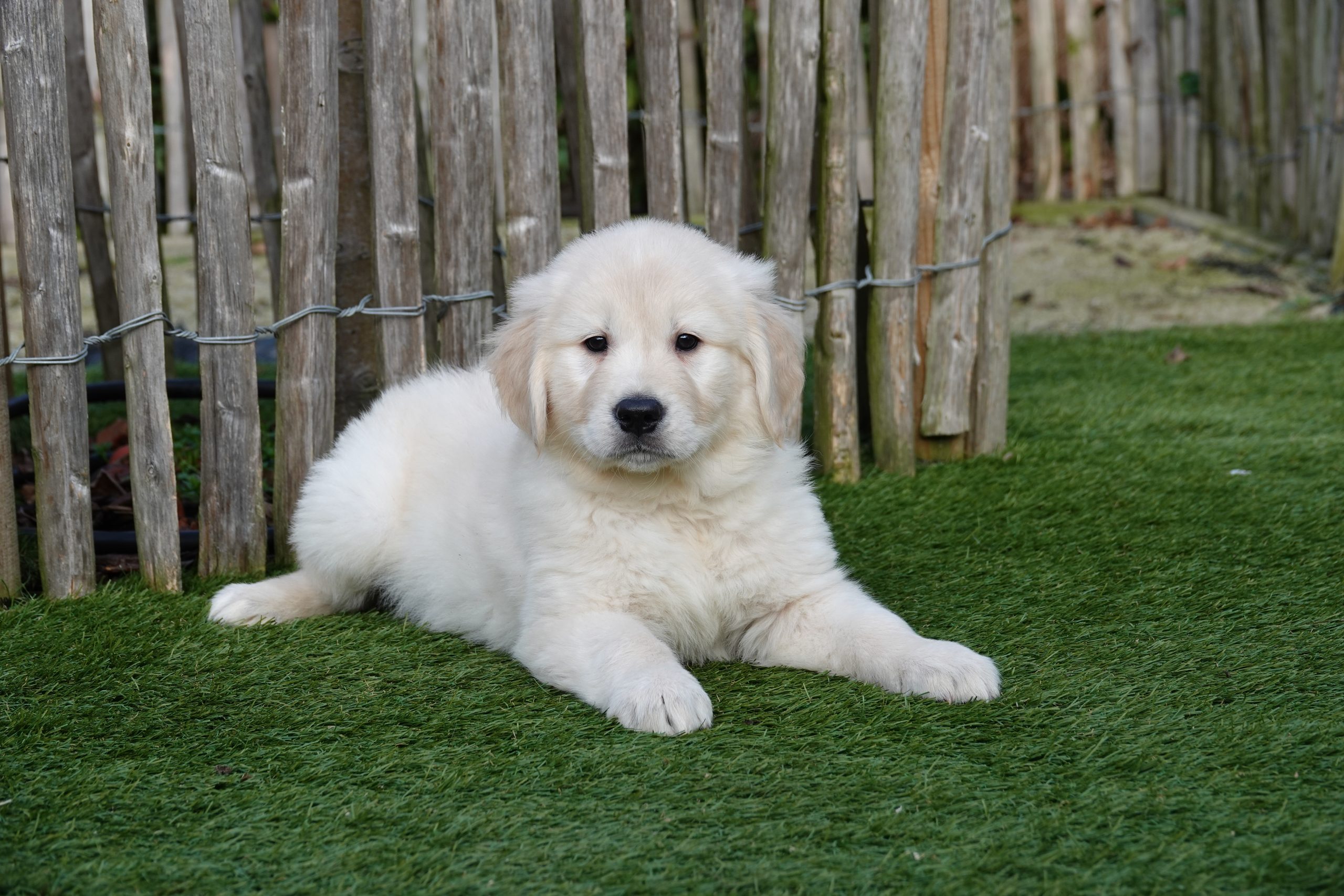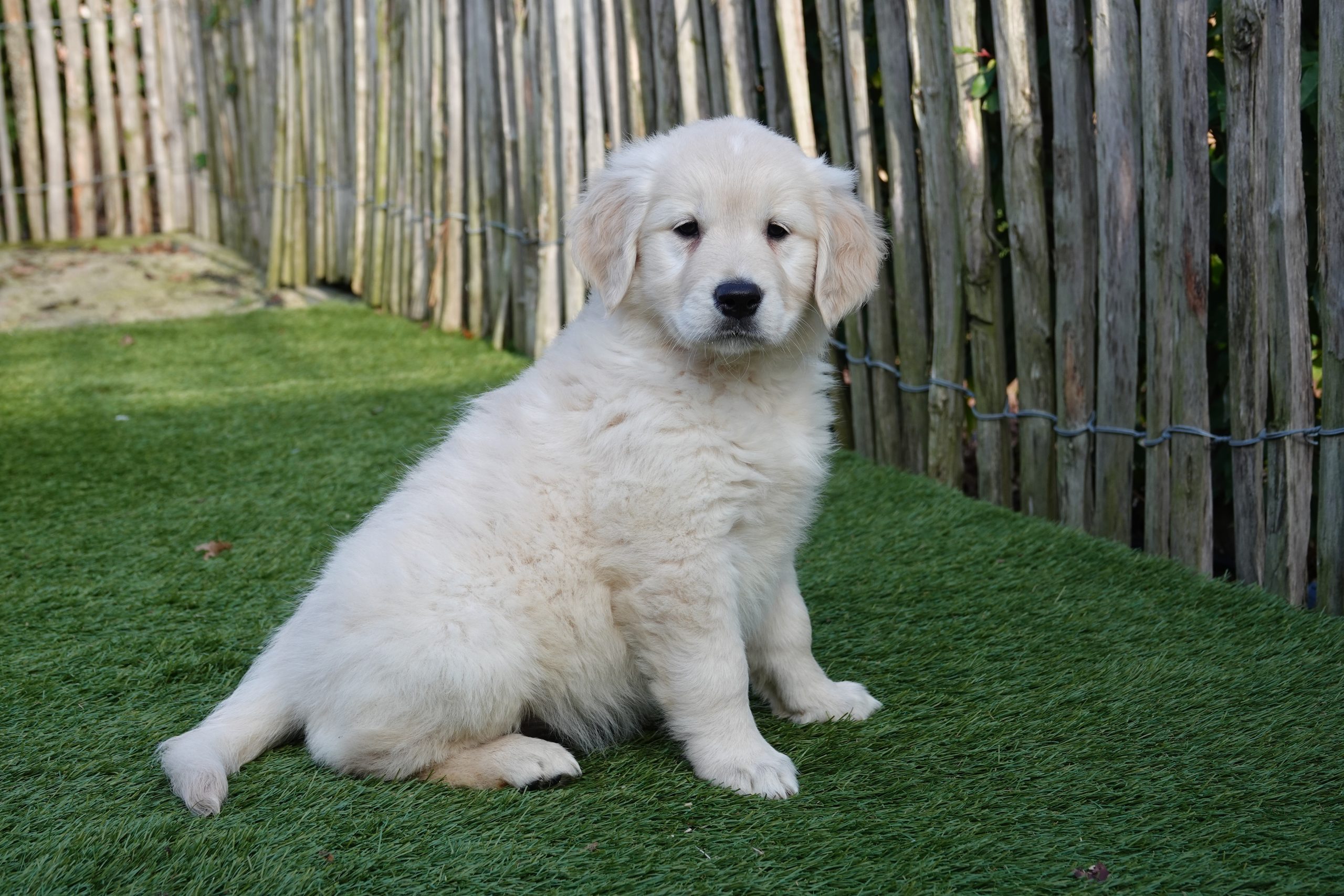Grâce à notre expérience et à nos connaissances, nous avons développé notre propre marque d'aliments pour chiens. Nous recommandons de donner la même nourriture pendant la période initiale. Vous pouvez les acheter chez nous à un prix avantageux. Nous passons en revue le tableau d'alimentation afin que vous sachiez parfaitement combien de grammes le chiot doit manger. Les heures habituelles d'alimentation vous sont également communiquées. La marque utilisée pour nos chiots Golden retriever est HUGFLO. Via notre propre boutique en ligne (www.deonlinehondenwinkel.be), vous pouvez continuer à donner la nourriture habituelle après coup ! Nous pouvons donc vous soulager à vie de vos préoccupations en matière de nutrition !