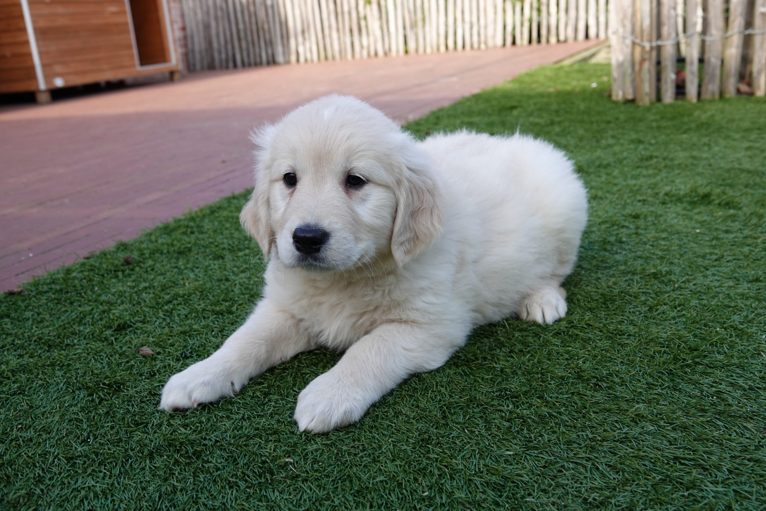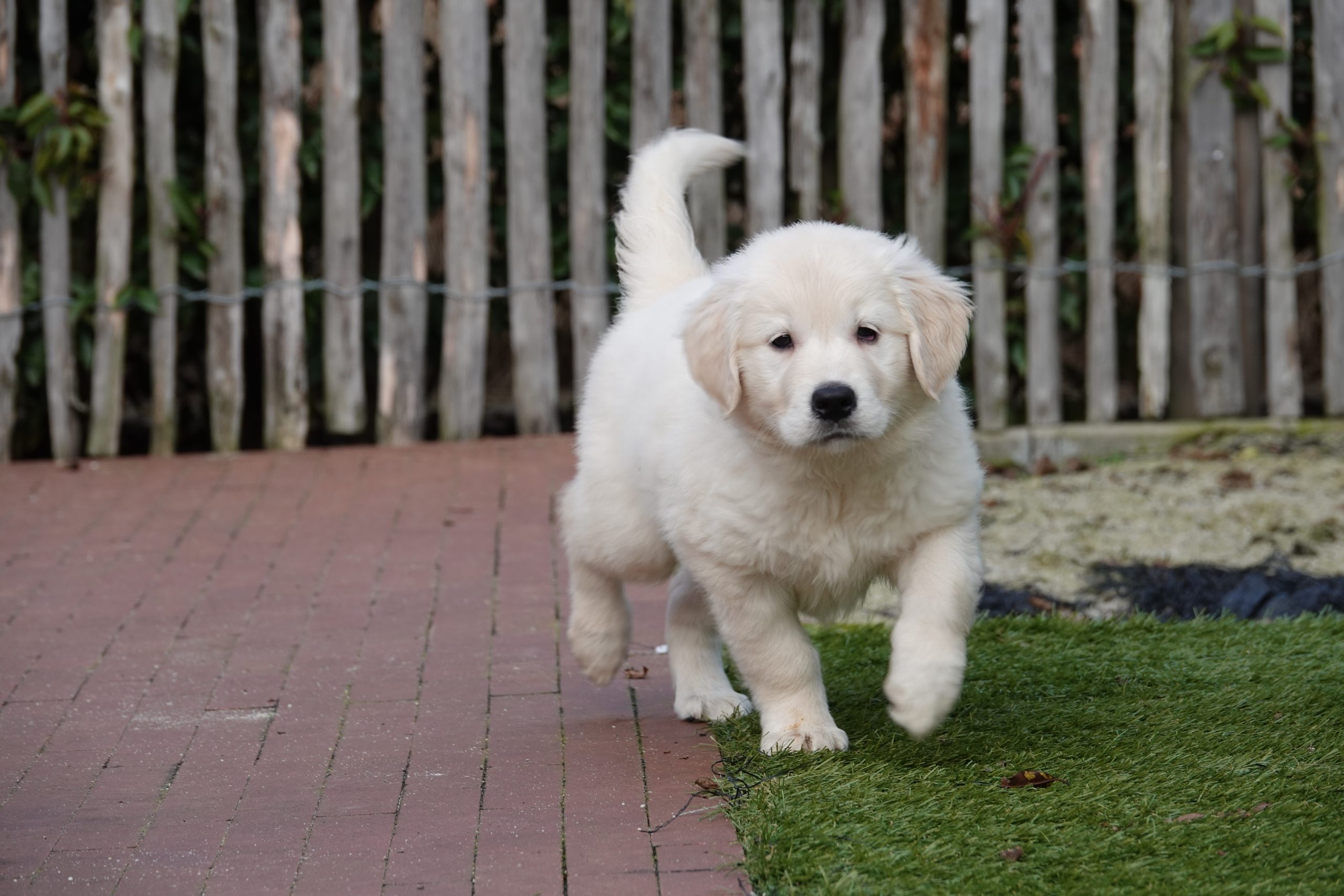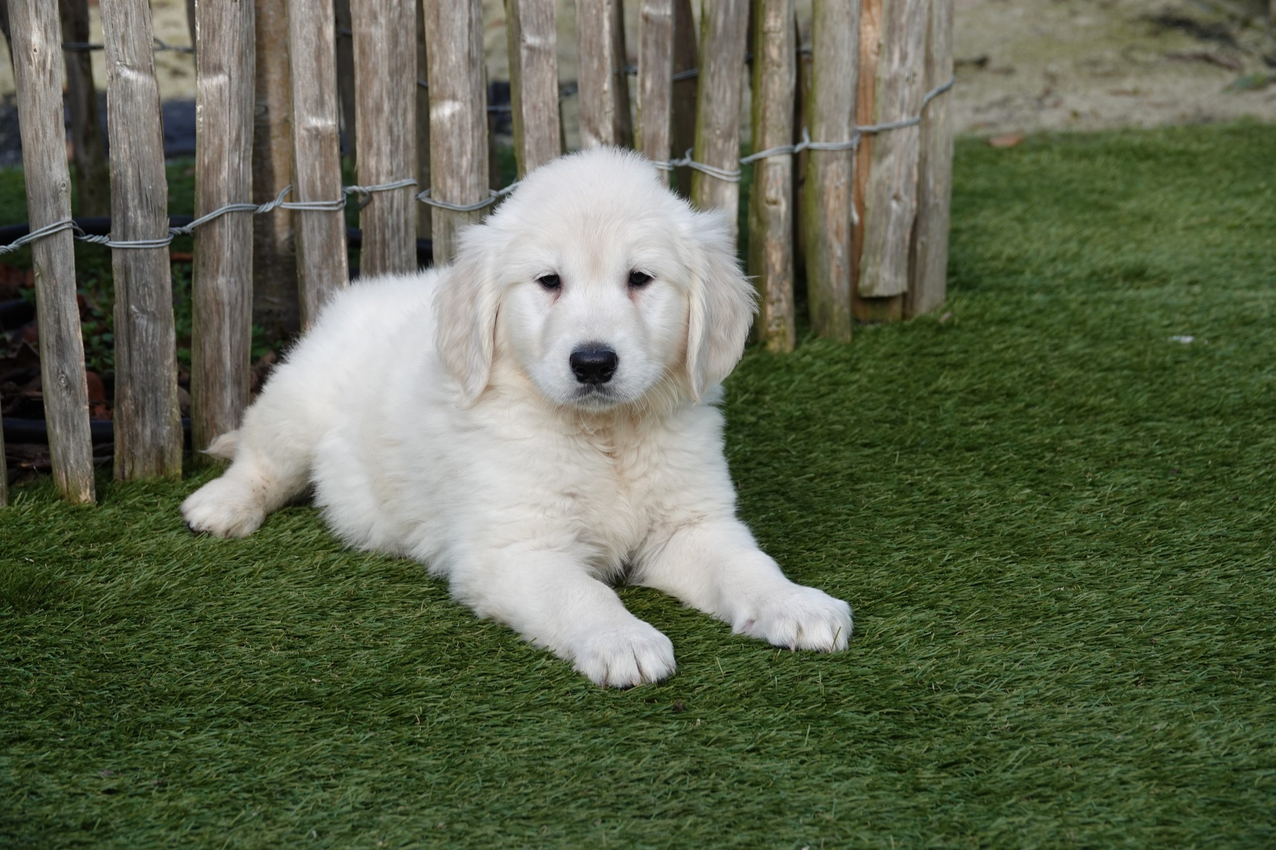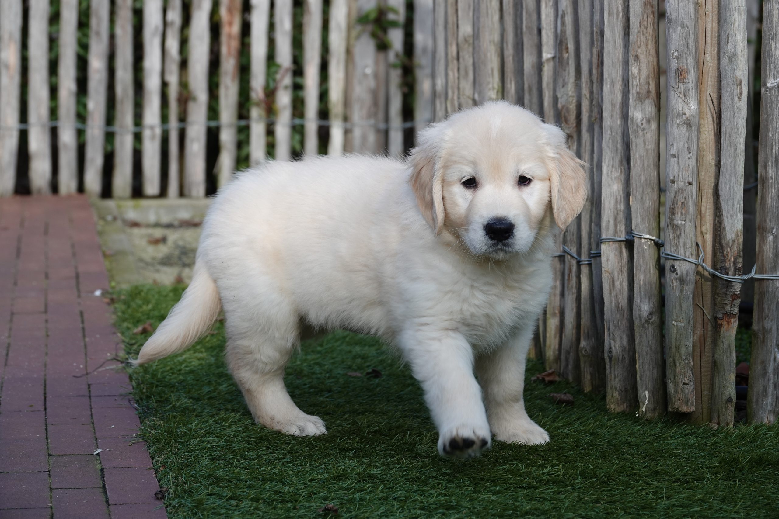 Grâce à notre expérience et à nos connaissances, nous avons développé notre propre marque d'aliments pour chiens. Nous recommandons de donner la même nourriture pendant la période initiale. Vous pouvez les acheter chez nous à un prix avantageux. Nous passons en revue le tableau d'alimentation afin que vous sachiez parfaitement combien de grammes le chiot doit manger. Les heures habituelles d'alimentation vous sont également communiquées. La marque utilisée pour nos chiots Golden retriever est HUGFLO. Via notre propre boutique en ligne (www.deonlinehondenwinkel.be), vous pouvez continuer à donner la nourriture habituelle après coup ! Nous pouvons donc vous soulager à vie de vos préoccupations en matière de nutrition !